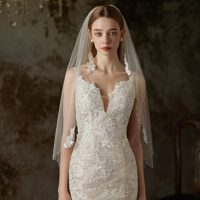 The V004’s fingertip length and lightweight tulle make it ideal for lawn ceremonies. It blows gently in the breeze without tangling with grass or flowers, and freshwater pearls add a romantic glow under sunlight. Paired with a chiffon or linen dress, it creates a bohemian-chic look perfect for photos in fields or by lakes.